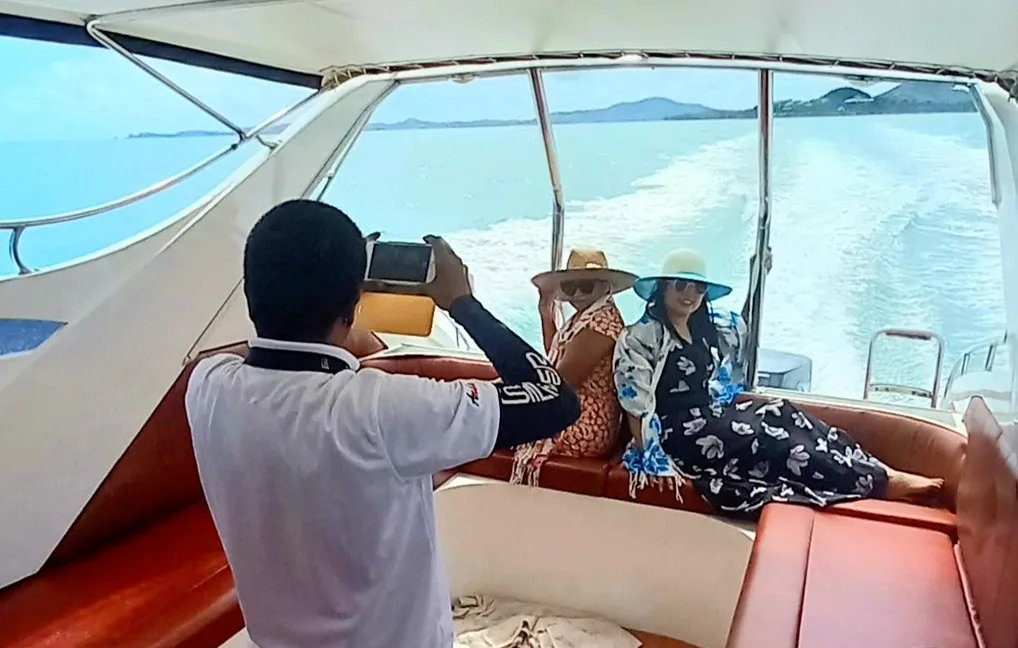 The twin-engine 12-meter speedboat for private Charters at Samui is licensed for up to 24 people, perfect for group size of 12. She guarantees comfortable and fast rides to the islands of Ang Thong Marine Park, Koh Tao and Koh Phangan. Build in toilet, fresh water shower and sound system.