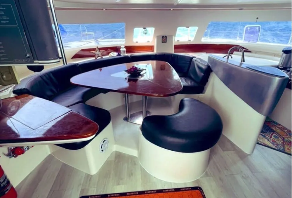 Below deck, 4 cabins and restrooms provide comfort and private zone.