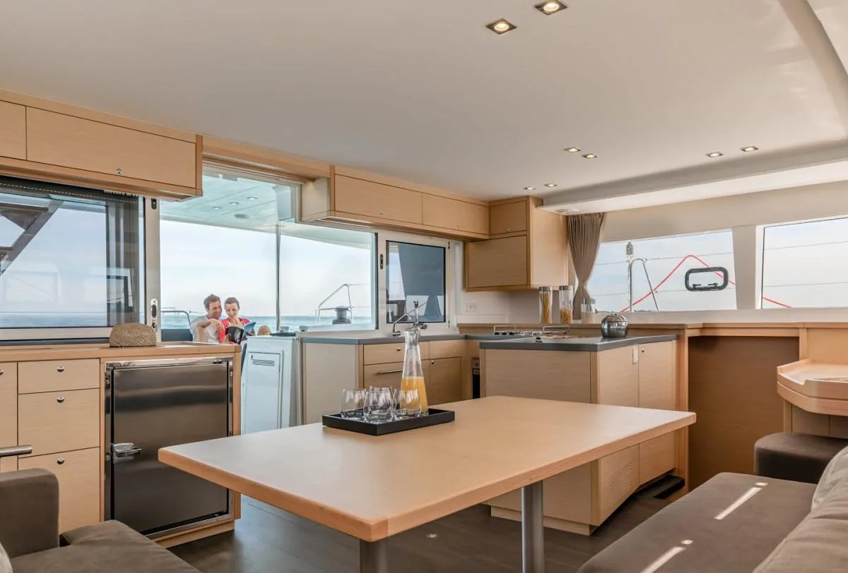 The catamarans from the French company are a legend, but especially the Lagoon 450 model: very spacious and family-friendly, with an airy view from the cockpit flybridge and a safe, wide aisle to the front sun area.