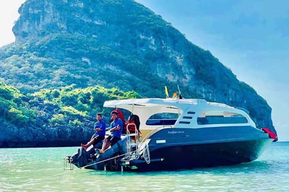 The 30ft single engine speedboats for charter at Samui are ideal for couples and small families in search of affordable Half-Day island hopping excursions that explore the deserted islands of the South-West. These Private charters include fishing, snorkeling, island hopping, beach picnics and even dolphin spotting for up to 10 passenger.