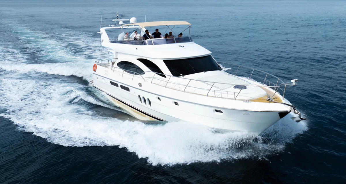 Discover Naya, the elegant Vtech 68ft yacht, designed for unforgettable voyages. Accommodating up to 30 day guests (and 6 sleeps), it features spacious cabins, modern bathrooms, a panoramic living area, and a fully equipped kitchen. Perfect for luxury and comfort on the water!