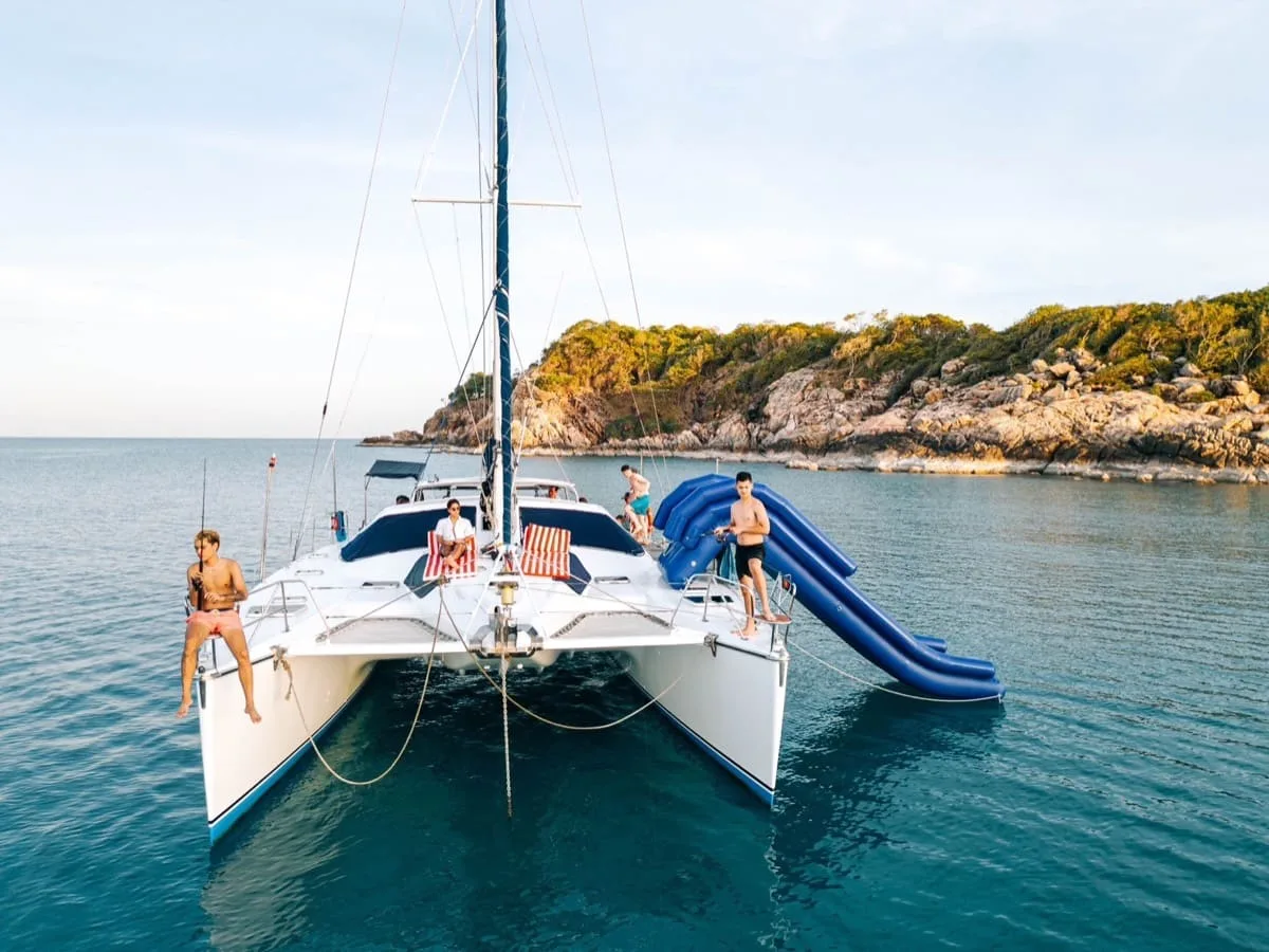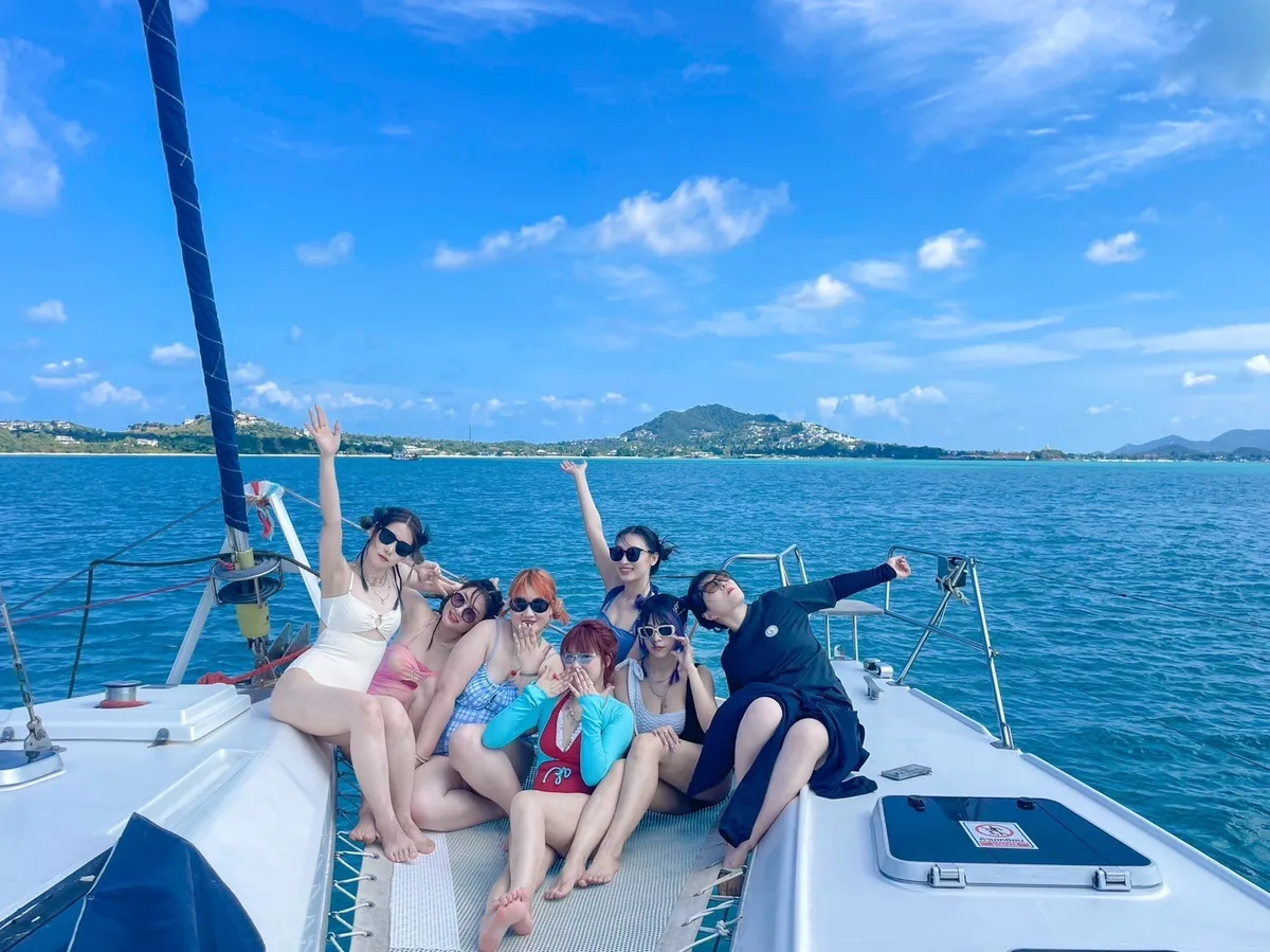 Meet Clare, our sleek 43-foot Privilege Catamaran – now available for exclusive private yacht charter in Samui: Perfect for sunset, half-day, or full-day cruises, this elegant yacht accommodates up to 20 guests in comfort and style.