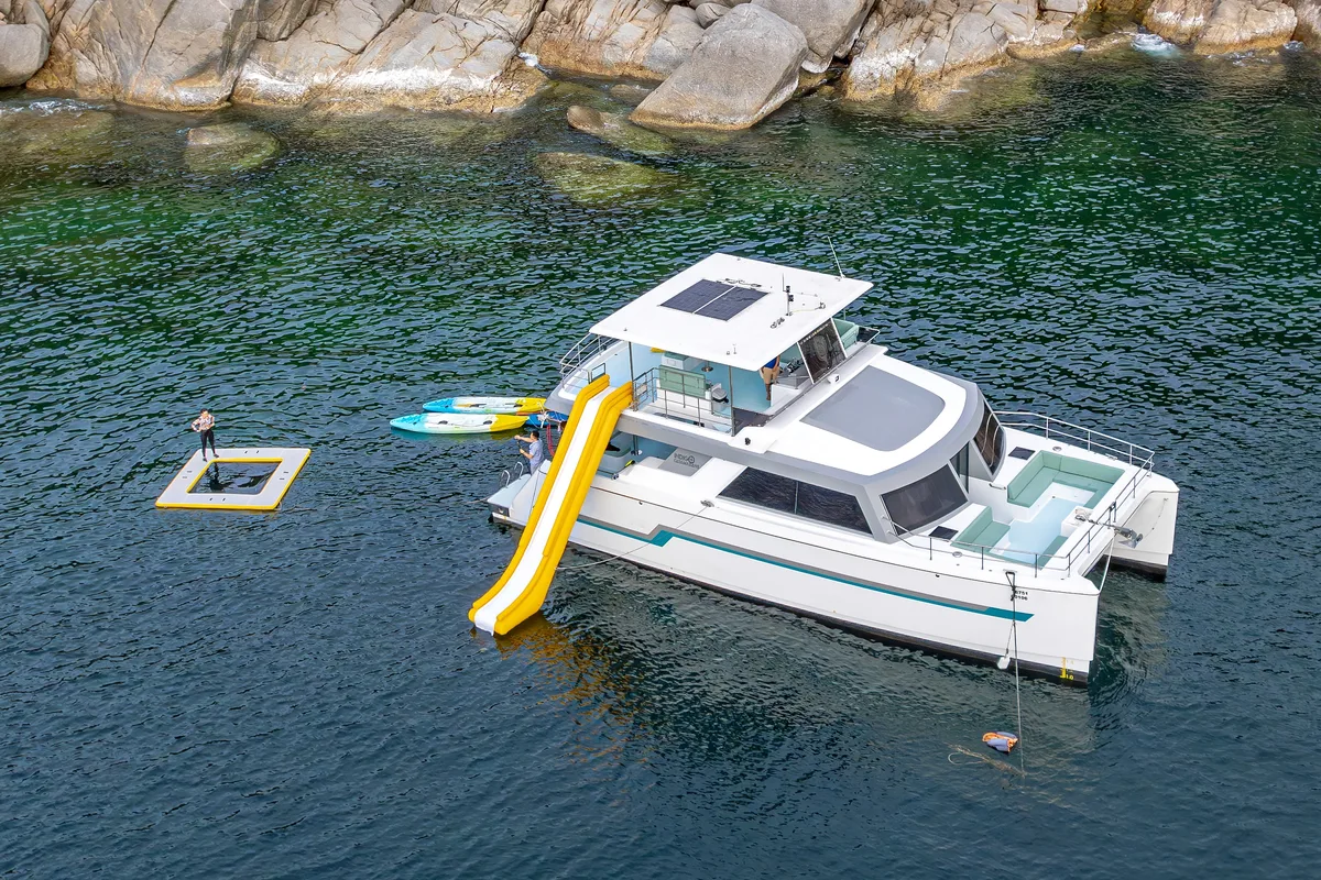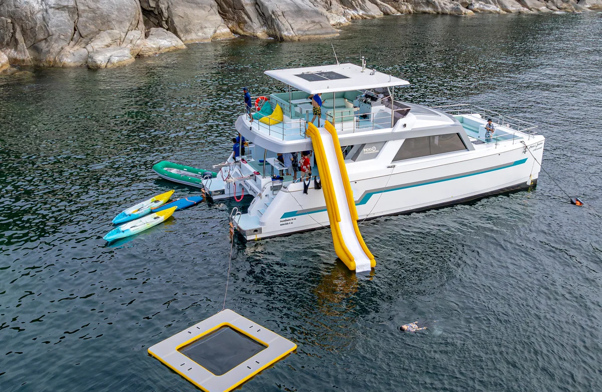 This is the brand new Sister of our very popular Inchigo Power Catamaran - and the better Charter Yacht Choice in Phuket for larger groups, if you like to enjoy air-conditioner on your trip. Very child-friendly with many toys like water slider. Pure fun for a maximum of up to 50 guests.