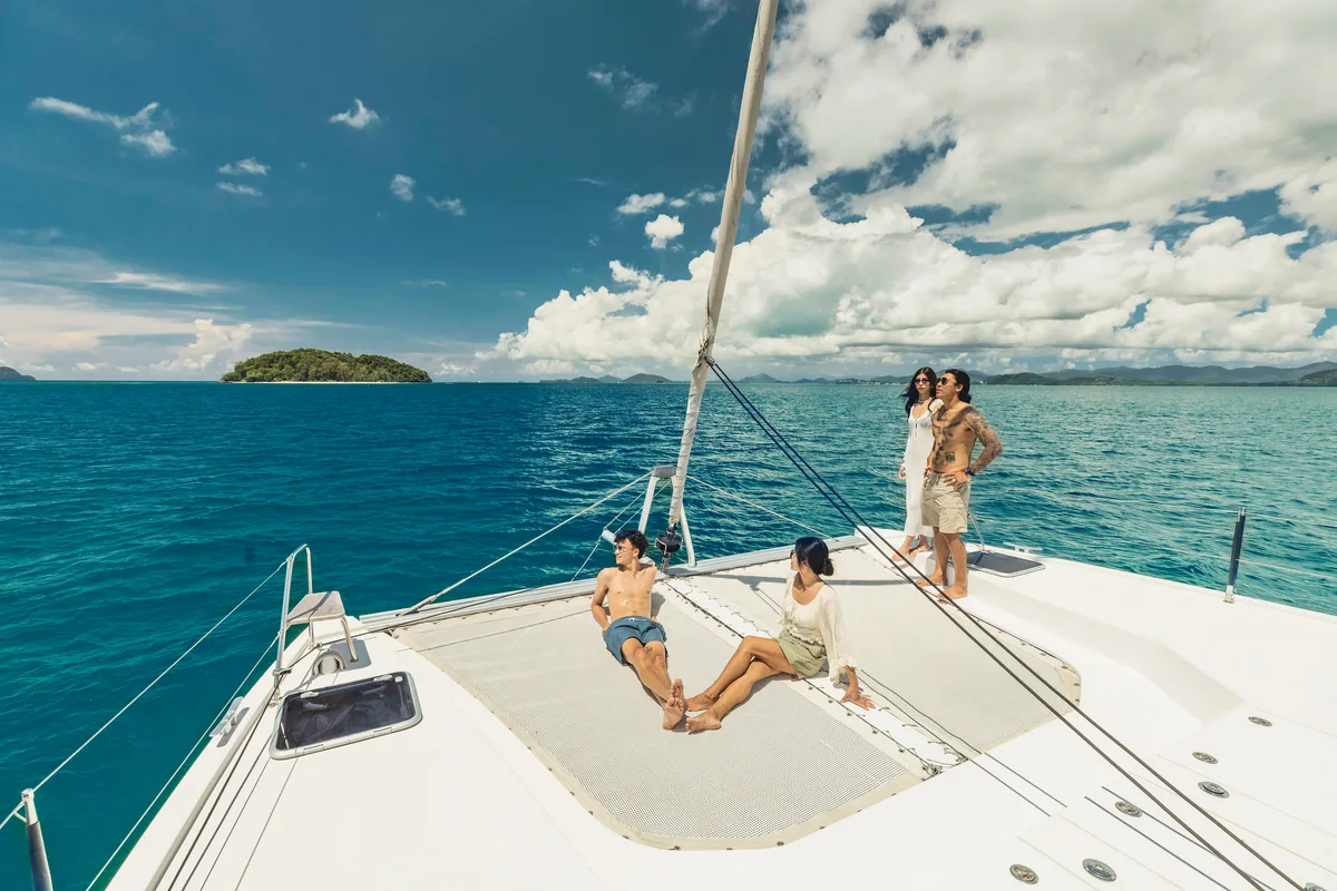 Our Nautitech 40 is a spacious and well-balanced 40-foot sailing catamaran for Charter in Phuket, ideal for relaxed cruises through the stunning landscapes of Phang Nga Bay. Ideal for day trips with up to 14 guests or overnight tours for up to 8 guests.