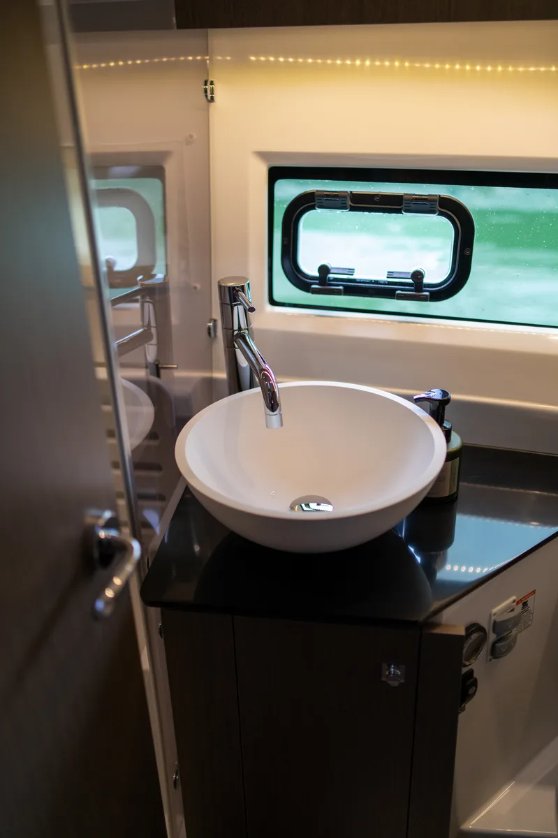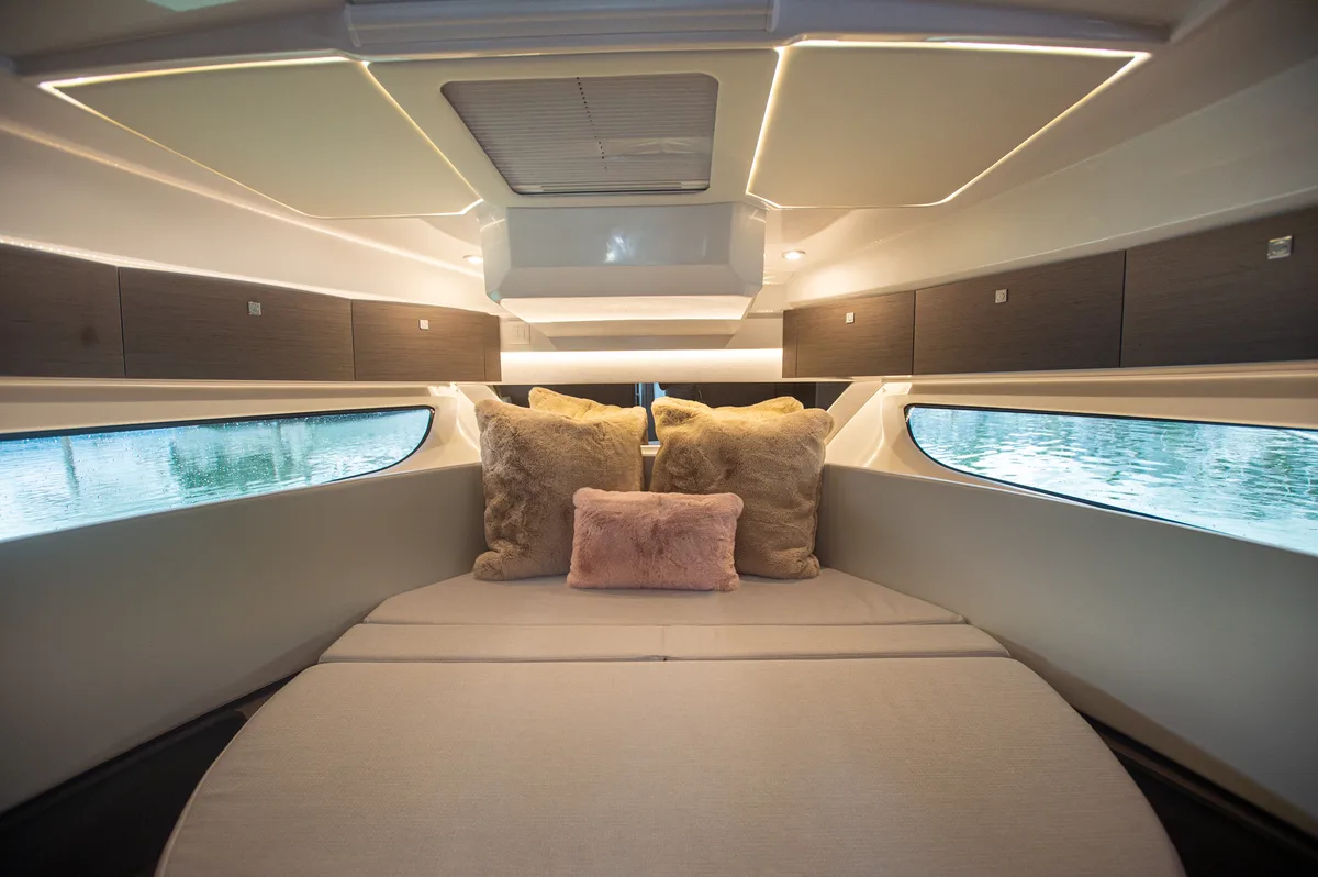 Equipped with a helm station, double bench, and sun deck options, it promises sporty adventures and relaxing moments for up to 8 guests.
