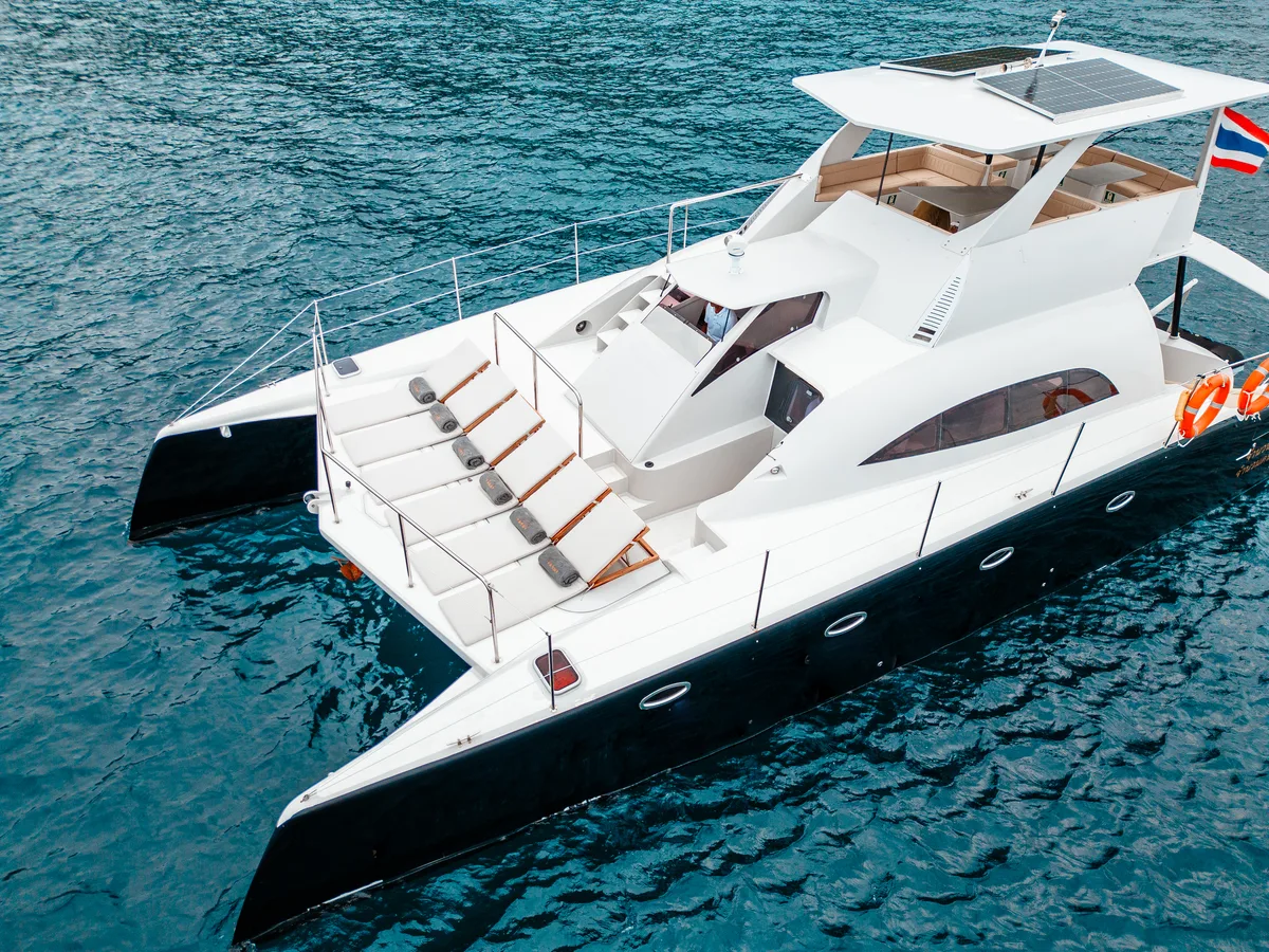 Enjoy Phi Phi Island (8h) on board of our 47ft Power Catamaran Black Panther.