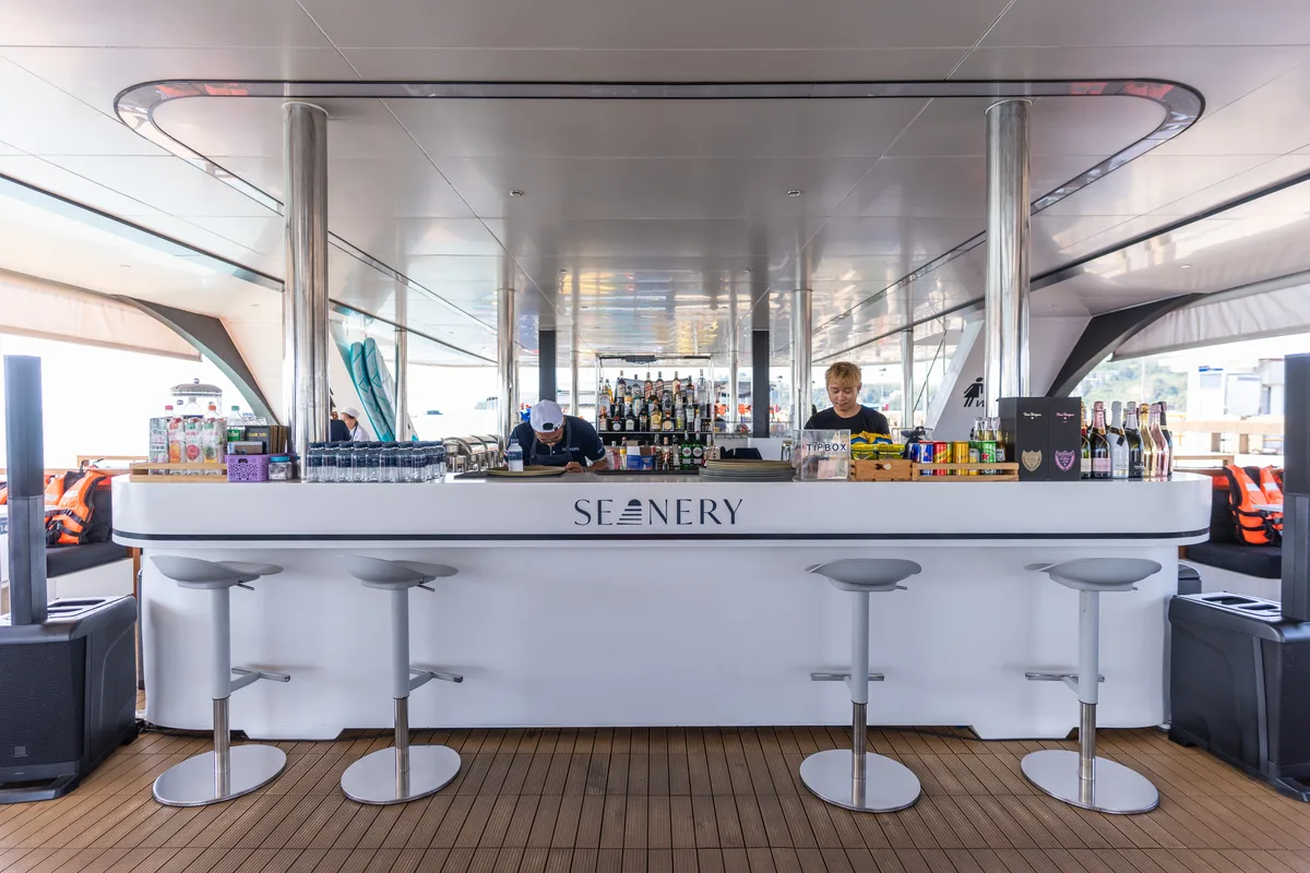 The possibilities are almost unlimited - from culinary delicacies and drinks to decoration, DJ and live music. Not to forget the water toys including big slider. Thanks to the stability with which the catamaran cruises through the water, guests can relax and enjoy the wonderful journey.