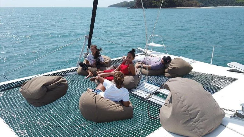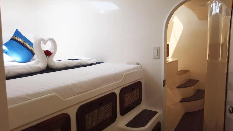 Ein praktischer Tipp für die Erkundung dieser majestätischen Inseln: halten Sie Bargeld bereit für spontane Abenteuer und verlockende frische Kokosnüsse von freundlichen Marktverkäufern. Das geräumige Deck der Mombay macht es Freunden oder Familien leicht, unter schwankenden Palmen zu entspannen, während Sie in den Entspannungsmodus gleiten.