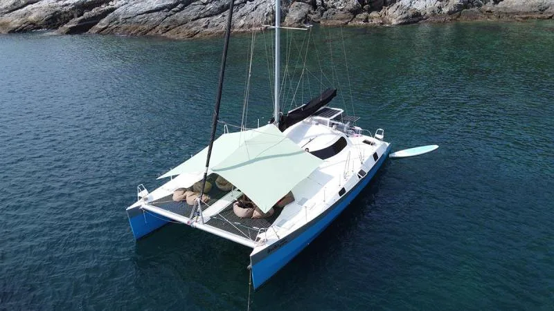 In einer Welt, wo die Sonne türkisfarbene Gewässer küsst, ist das Leben an Bord der Mombay wie ein eigenes privates Paradies, das auf Wellen der Glückseligkeit treibt. Unser 48ft Mumby Segelkatamaran beherbergt mühelos bis zu 15 Gäste für zwei unvergessliche Nächte und drei Tage der Erkundung rund um das atemberaubende Phuket.