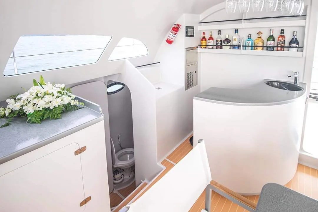 The spacious flybridge and modern living spaces offer a relaxing experience. It also comes with all amenities for your comfort, from high speed wifi to various water sports such as kayak, windsurf, paddle board and more...to have fun along your journey.