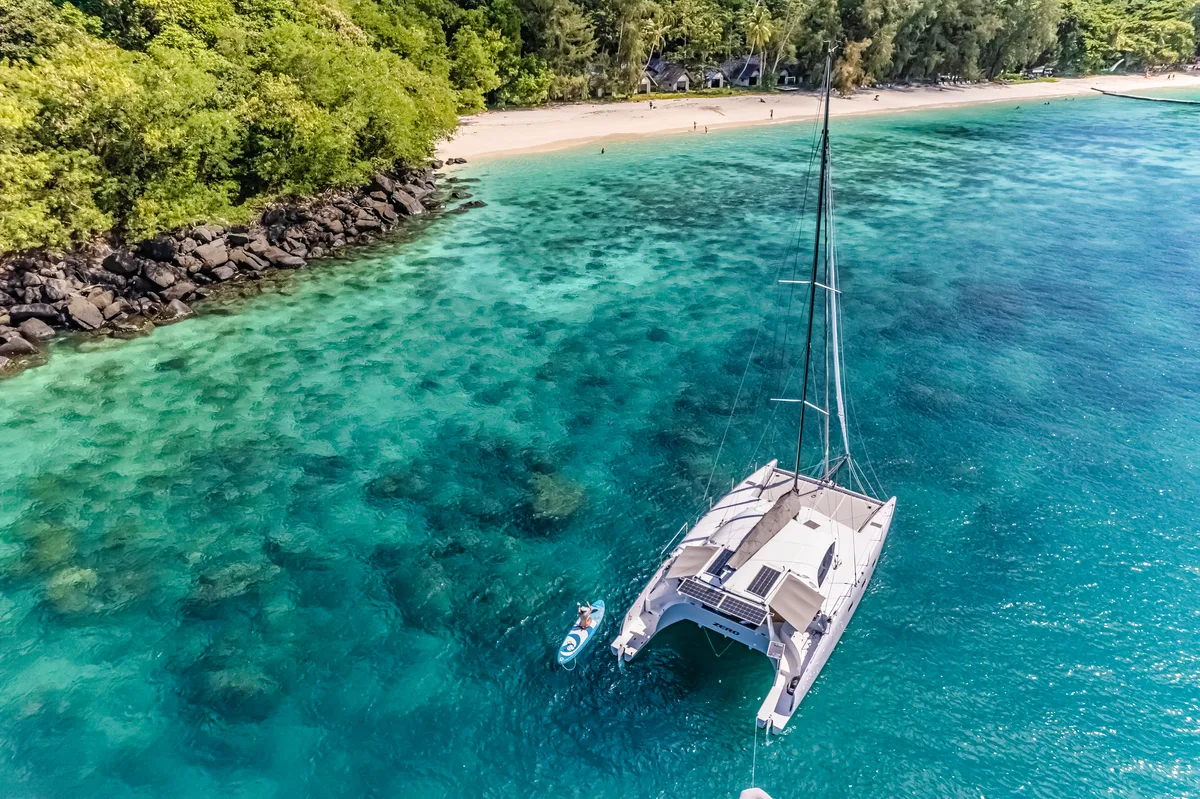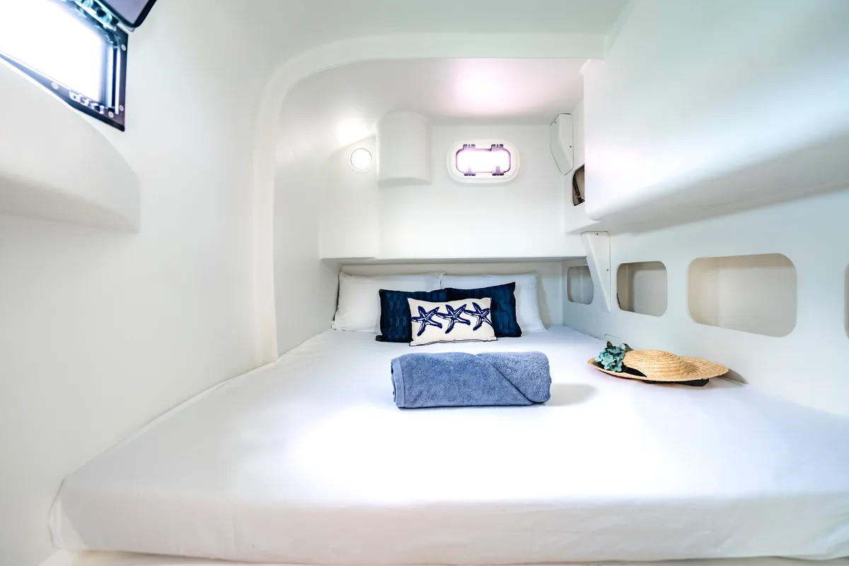 The simple, modern design sets an excellent contrast to the warm service from the crew, who do their job still with passion and love. The spacious open saloon with drop down windows offers perfect comfort in tropical waters.