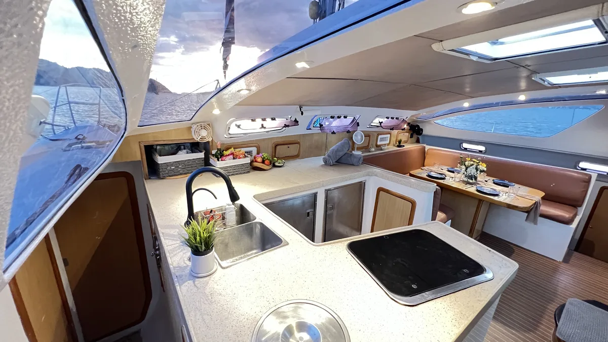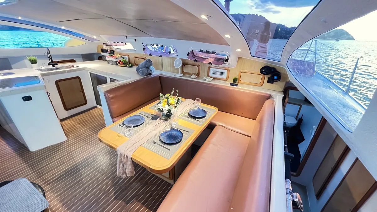 A stylish gem among Phuket's charter fleet, Moonlight is perfect for small groups of up to 10 guests (registered for 20) or 4 overnight guests seeking an authentic sailing experience in the Andaman Sea. Her thoughtfully designed layout maximizes comfort and deck space, while twin-hull stability ensures smooth sailing for everyone aboard. This boat can also be rented with self-catering and skipper only. Please contact us if you are interested.