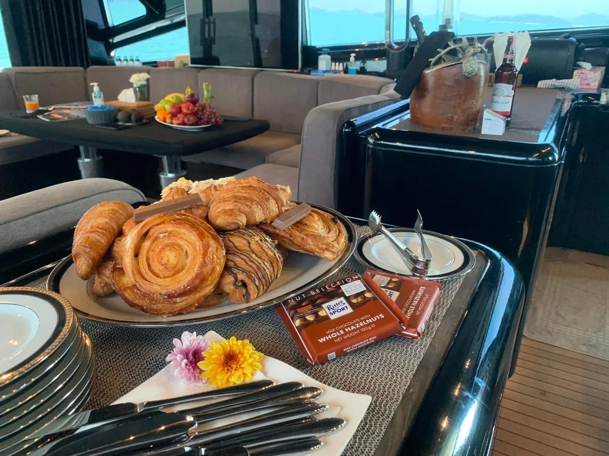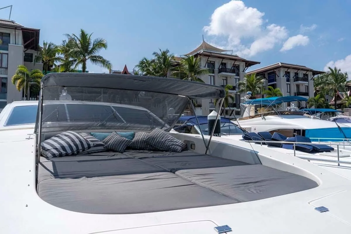Our Panther is a grand motor yacht smelling still brand new after the refit in 2021. She features 3 cabins and takes up to 18 guests for an unforgettable yacht charter trip in Phuket.