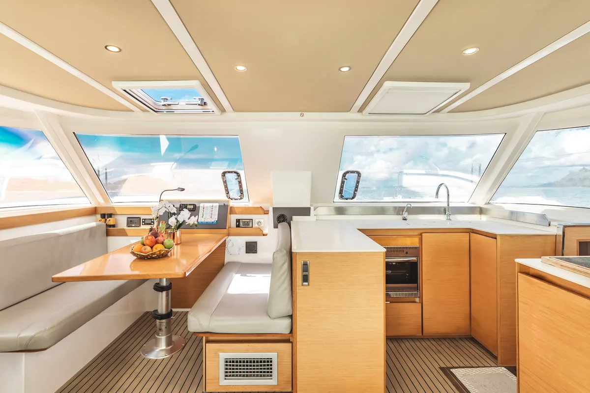 Our Nautitech 40 is a spacious and well-balanced 40-foot sailing catamaran for Charter in Phuket, ideal for relaxed cruises through the stunning landscapes of Phang Nga Bay. Ideal for day trips with up to 14 guests or overnight tours for up to 8 guests.