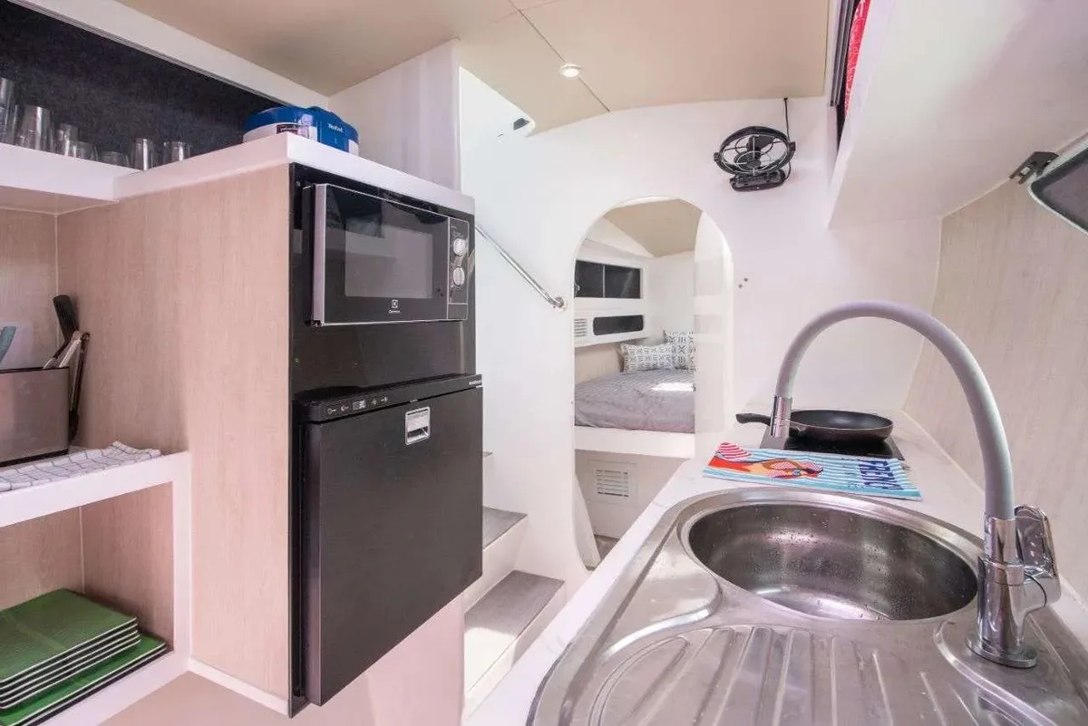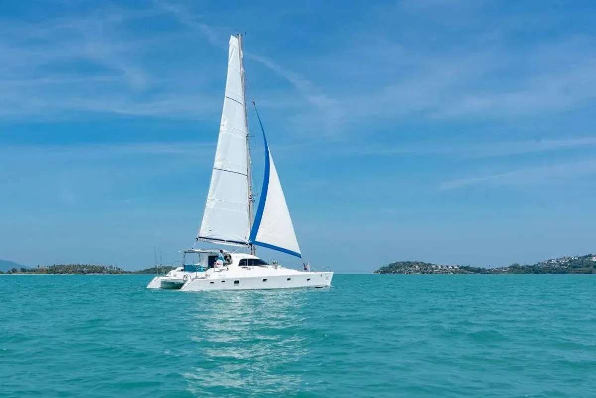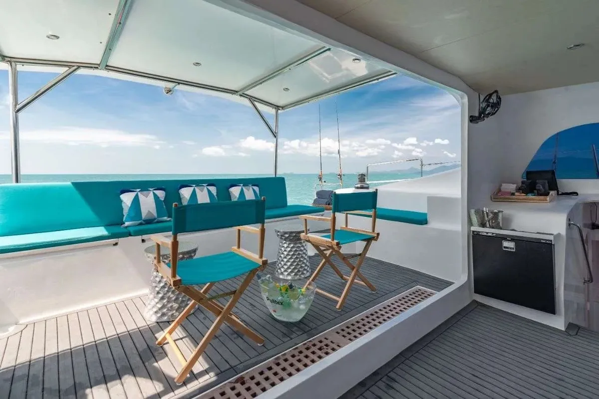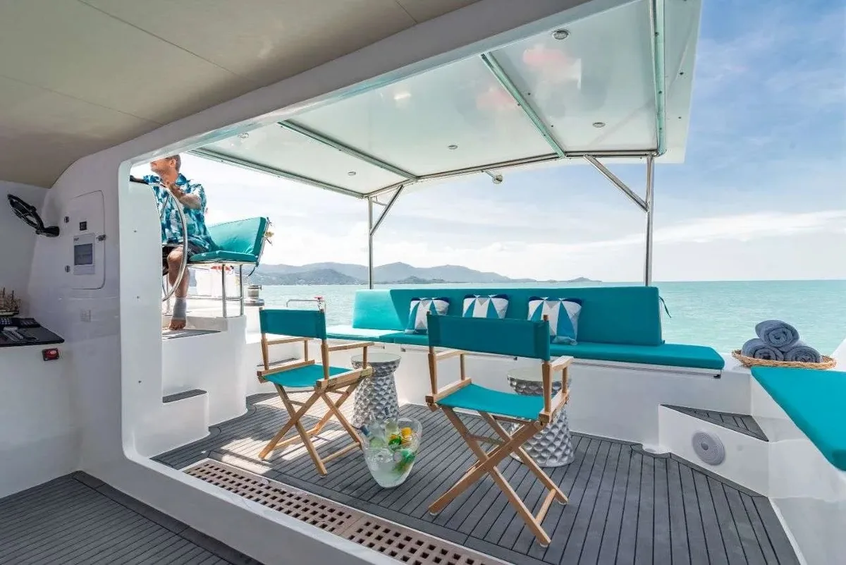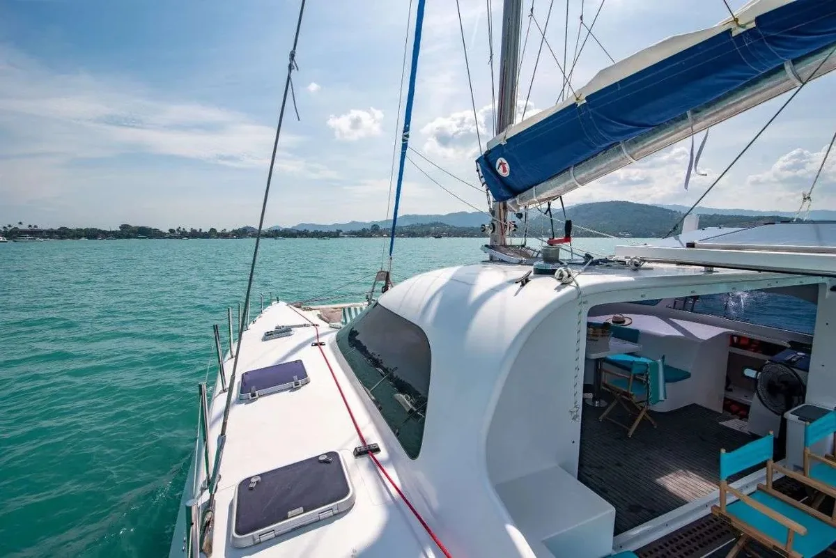This luxury sailing Catamaran for Charter in Samui designed by the well-known UK-based boat designer and build in Thailand for tropical waters. With its spacious deck and salon, as well as a wide-decked platform at the stern its perfect for groups up to 18.