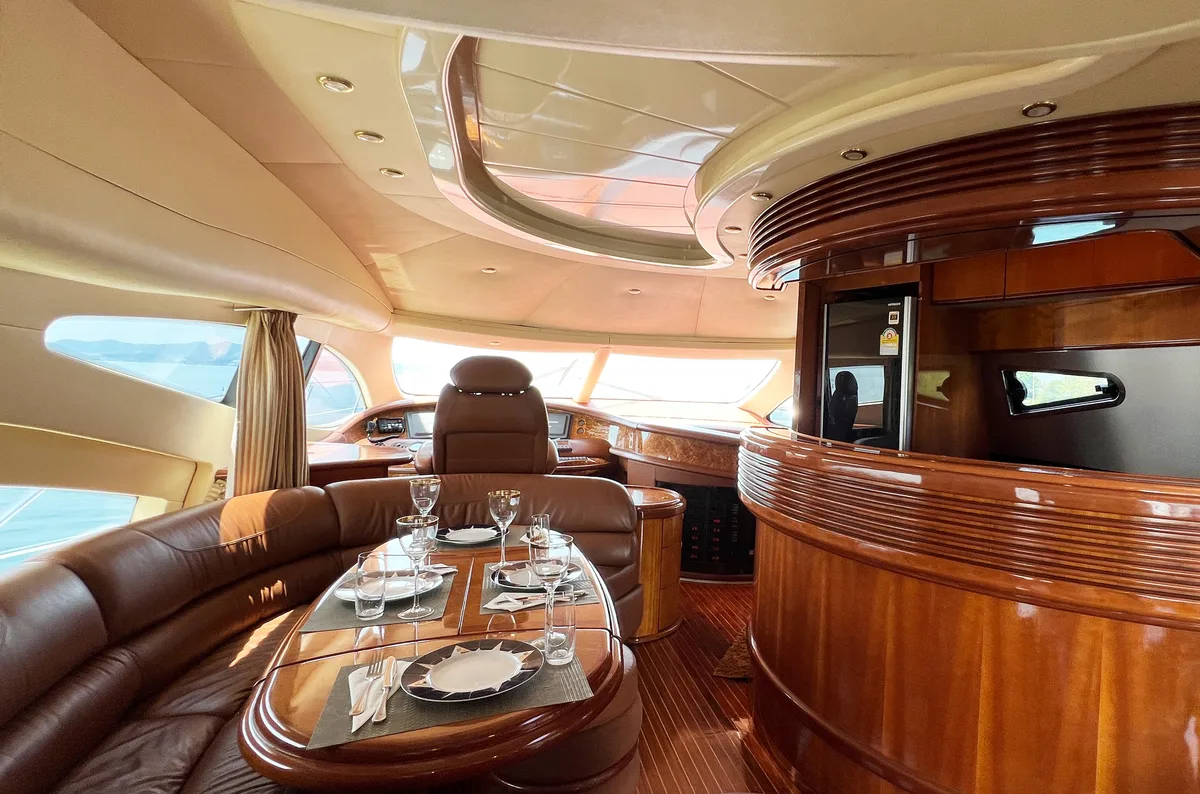 This flybridge model from Azimut impresses with its 68ft length with old-school extravagance and airy character. A private owned yacht that is quite old and used, but still an experience to those who love Azimut 68. It offers plenty of air-conditioned space for up to 20 day guests.