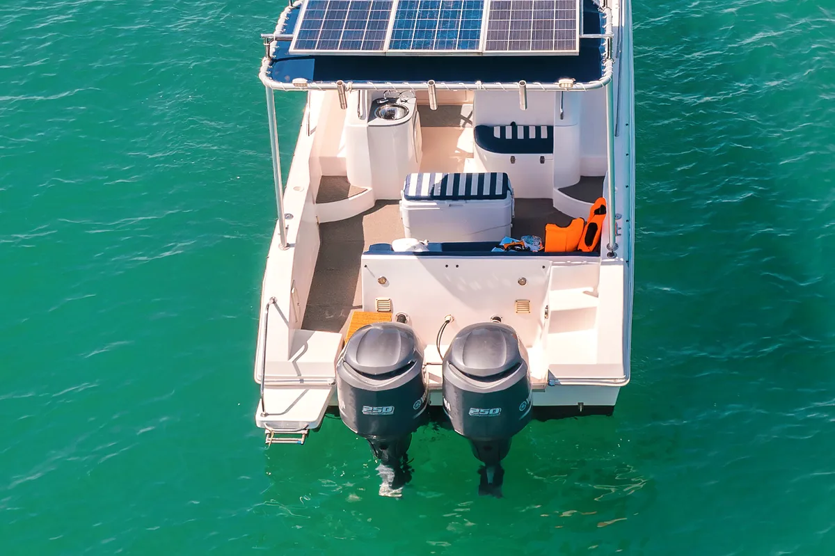 This is neither a yacht nor a speedboat, but the perfect mix of both. For everyone who wants to rush through the water with maximum luxury and full throttle at the lowest price and reach distant destinations. For couples and small groups of up to 8 people.