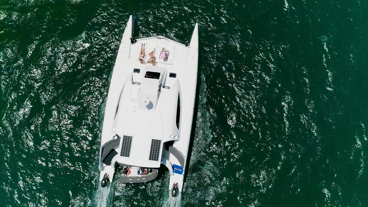 With plenty of space for sunbathing outside, a shady open salon area and three cabins for your nap during the trip. Perfect choice for families and groups up to 14 pax.