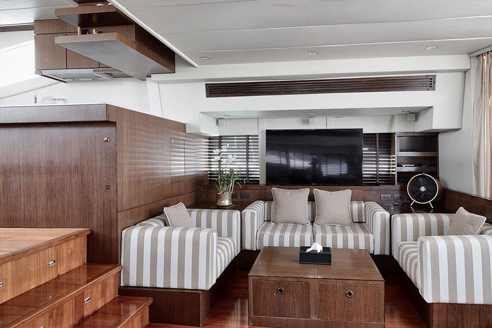 Her spacious fly-bridge guarantees pleasant views of the amazing landscapes. She can accommodate up to 8 guests in 4 cabins with luxurious touches.