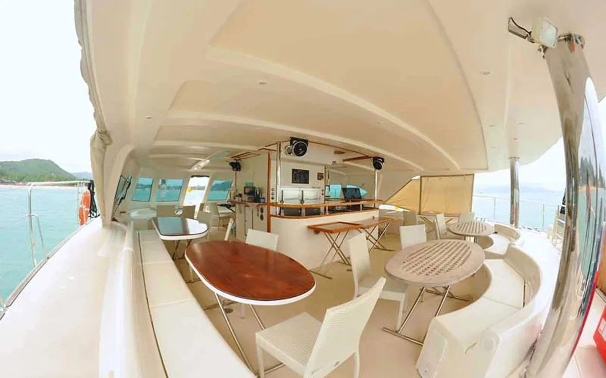 The flybridge (rooftop) alone leaves room for 25 pax to lounge and even dance into sunset. For day trips Tranquilla do full rounds around Samui or Phangan, go to the National Marine Park Ang Thong in an extended full day, and cruises the Samui shoreline for sunset trips.