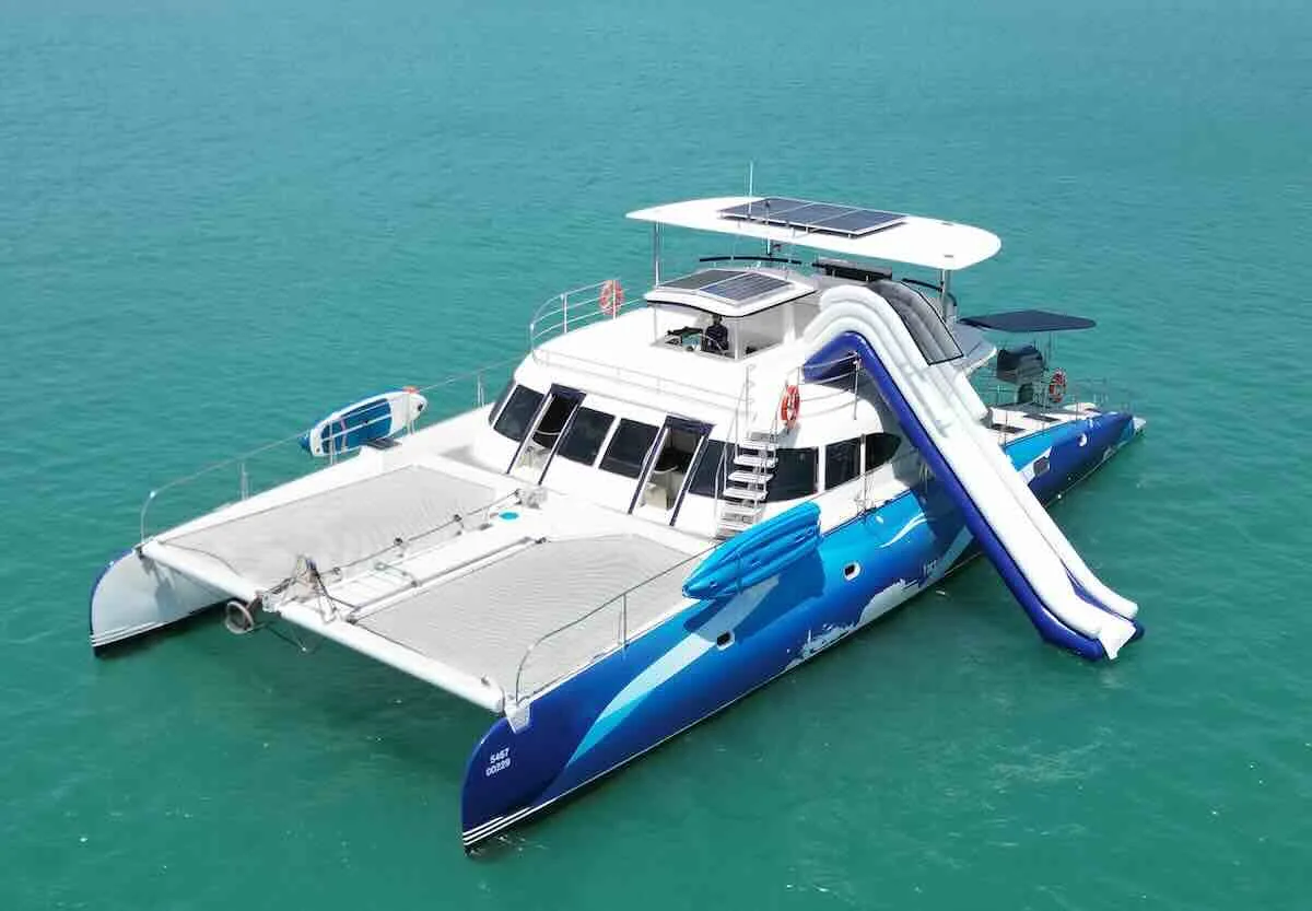 Tranquilla is the only catamaran for charter in Samui which can accommodate large groups in comfort. With 220 sqm usable deck area Tranquilla is perfect for the wedding or birthday party with groups of up to 60 persons - and still luxury.