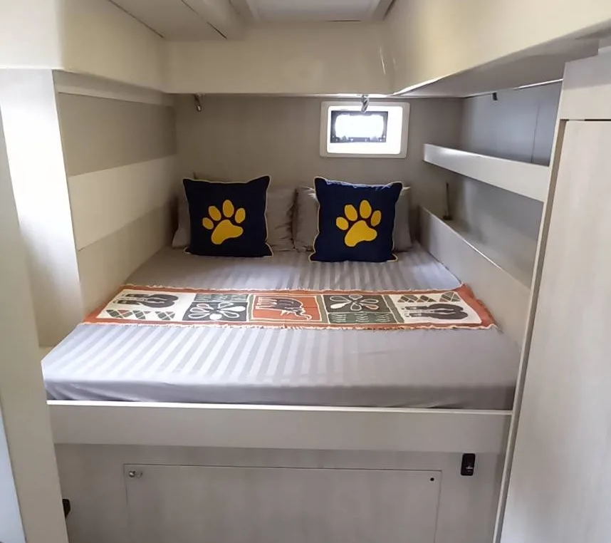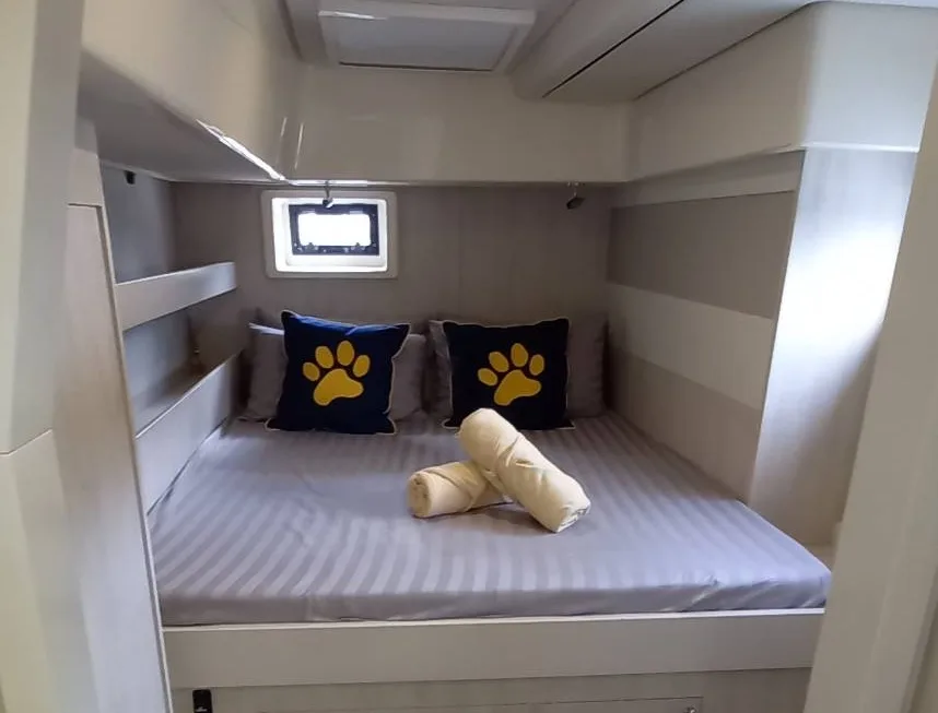 The modern interior runs through all areas including the large air-conditioned cabins with separate shower cells, making the Power Catamara a perfect choice for overnight stays with groups of 6.